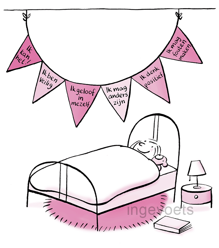 Girlande mit kräftigenden Gedanken wie: Ich kann dass, Ich bin hier